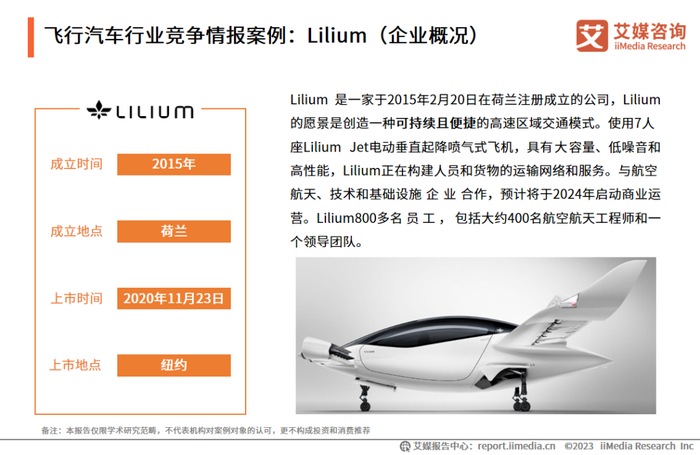飞行汽车行业竞争情报案例:Lilium(企业概况)