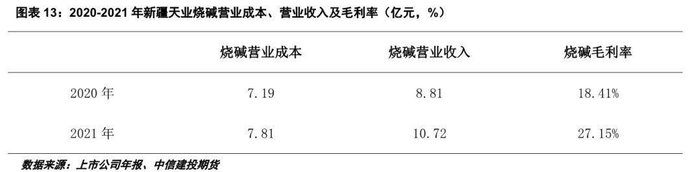 新疆天业是国内产能靠前的烧碱企业,2021年末其烧碱产能达到110万吨,2021年烧碱总产量为109.36万吨,其中液碱产量为59.78万吨,固碱产量为49.58万吨。