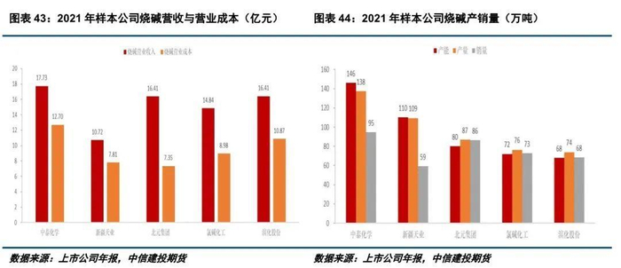 前文对五家国内烧碱产能靠前的上市公司基本情况和烧碱业务做了较为详细的分析,此处进行横向的比较。