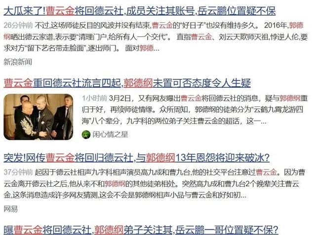 近日,多家自媒体账号纷纷发文称,有网友发现郭德纲的徒弟曹九台、高九成关注了曹云金的超话。
