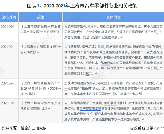 从上海市近两年汽车零部件行业相关政策来看,新能源汽车零部件、燃料电池等汽车零部件为布局的重点。2021年7月,上海发布的《上海市先进制造业发展“十四五”规划》中提到,要进一步推动传统汽车整车及零部件企业强化研发创新,突破整车以及先进变速器、高效内燃机、汽车电子、轻量化材料等关键核心技术。具体政策如下:
