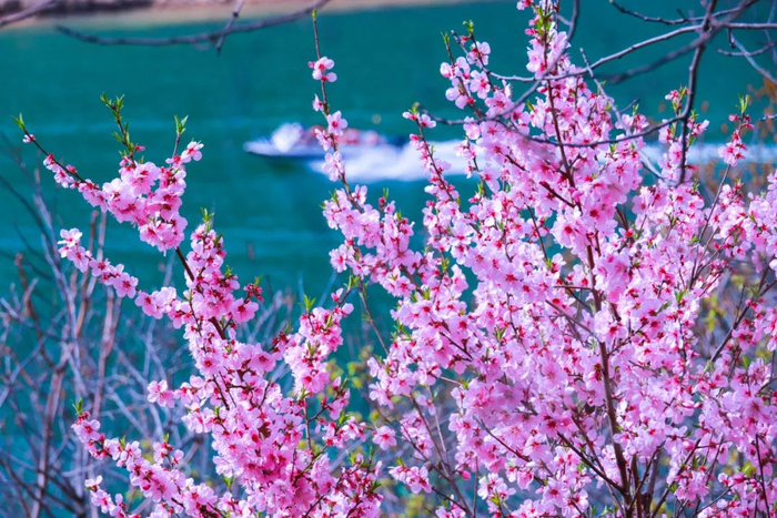 青天河万亩桃花海始花期在3月上旬,盛花期在3月中旬至4月上旬。