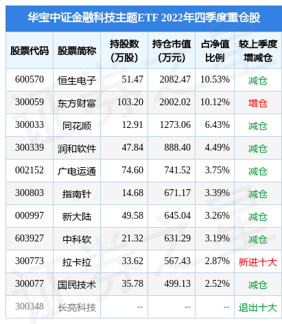 华宝中证金融科技主题ETF的前十大重仓股如下: