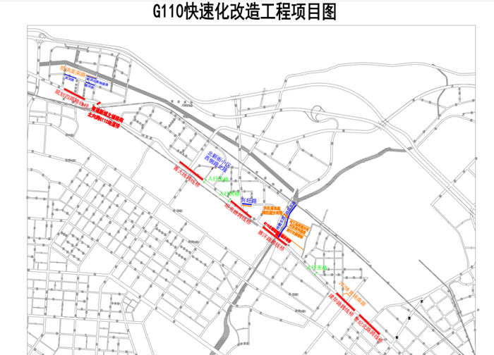 改造工程西起G110国道与民族东路交叉口以东,东至G110国道与G210国道交叉口以西,快速路主线双向四车道,将采取“地面快速+局部节点高架”的建设方式,同时还将取消主线全部红绿灯,达到快速通行的目的。