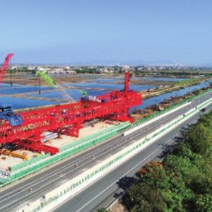 2017年,自主研制的当时国内最大吨位的跨海架桥机JQ1300,填补了国内跨江跨海大桥成套施工设备的空白,成功用于浙江省三门湾跨海大桥TJ8标段,共架设222片箱梁。