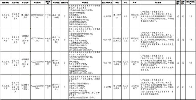 (一)笔试笔试具体时间、地点将通过“武汉纺织大学人才招聘网”(http://sites.wtu.edu.cn/zp/)的“招聘公告”栏另行通知。笔试为综合素质测试,主要考察应聘人员的政治素质、法纪观念、职业素养、思想作风、工作态度等,实行百分制。应聘博士辅导员岗位人员,单独考试。根据笔试成绩排名,按照相应招聘岗位计划数1∶3的比例确定进入面试人员名单。笔试成绩出现末位并列时,末位并列考生均入围面试。笔试成绩设置最低合格分数线,成绩达到60分及以上方能进入面试。招聘计划与笔试合格人数不足1:3的,保留该岗位,根据实际人数进入面试。