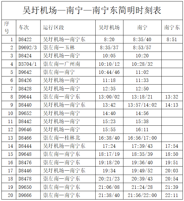 3月6日起,南宁市区至吴圩国际机场间每天加开动车18趟,累计开行达40趟,基本实现公交化开行。