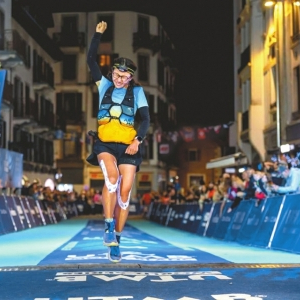 2022年,向付召再战UTMB,以女子组第7名的成绩登上领奖台。图为她冲线一瞬。