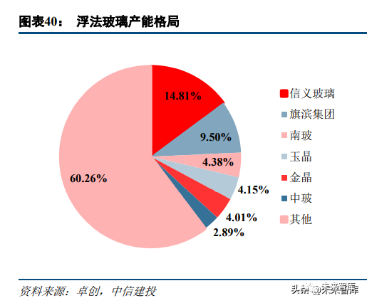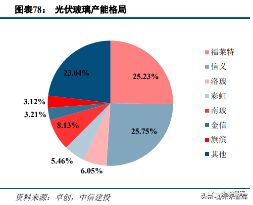 龙头公司毛利率显著领先于其他公司,未来行业格局有望进一步优化。目前,信义玻璃、旗滨集团产能占 比分别为 14.8%、9.5%,相比于光伏玻璃格局较为分散(信义光能和福莱特合计产能占比超过 50%)。原因有三:第一是浮法玻璃技术较为成熟,产线兴起较早;第二是浮法玻璃下游需求较为分散,而光伏玻璃下游需求目前 主要集中在东南沿海地区,有利于大规模产线和企业的形成;第三是光伏玻璃需求快速增长期在 2018 年之后, 当时我国已开启供给侧改革,对高耗能产线的能耗指标审批较为严格,龙头更加容易获得指标提升市占率。