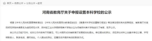 2月14日,河南省教育厅发布《关于申报设置本科学校的公示》,河南省教育厅对信阳师范学院申请更名为信阳师范大学等进行了考察,现予以公示。