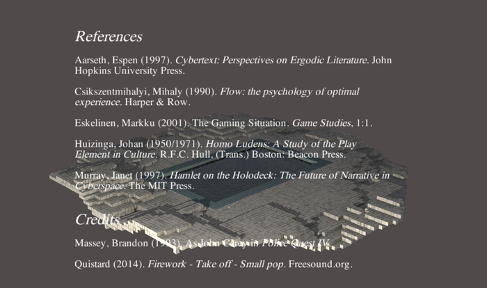 这使得此文并不仅是有关电子游戏的论文,而更是以电子游戏作为形式,作为研究方法的论文,是可玩的论文(playable essay),以及作为研究的游戏(game-as-reaserch)。