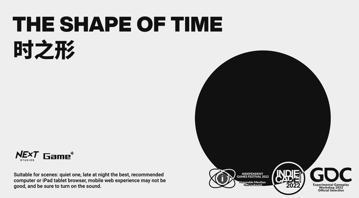 我在腾讯 NExT Studios 所进行的Gameplus游戏+研究创作计划的第二期的游戏《时之形 The Shape of Time》就是一次制作实验性哲学-游戏的尝试。这个游戏的原型诞生于一次游戏制作挑战(机核网举办的GameJam活动),可能因其显得“不太寻常”,收到了不少玩家和开发者的讨论与好评,也获得了2022年的 IGF Nuovo Award 的荣誉提名,以及 2022年 Indiecade 的叙事类提名,并在游戏开发者大会(GDC)的实验游戏工作坊上进行了分享,也算得到了一些实验性和独立游戏传统的认可,很不成熟,但或许有些许实验意义可供分享。