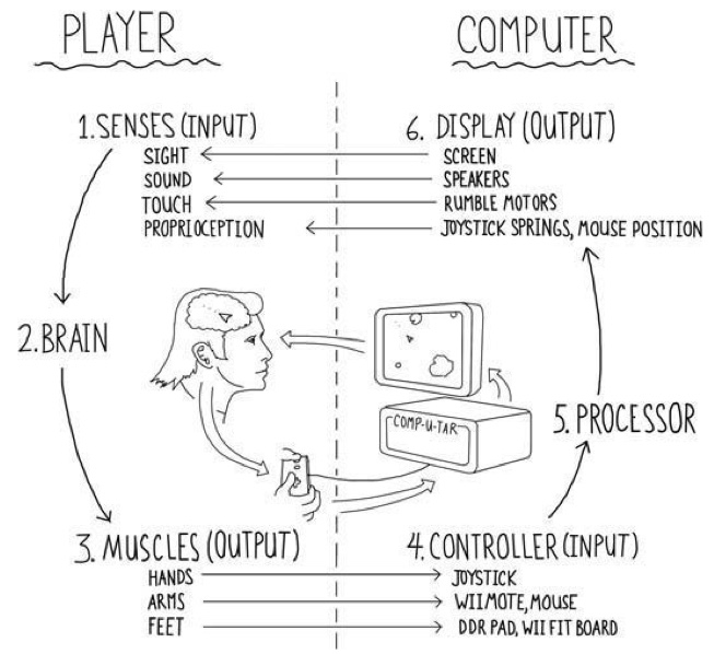 我觉得自己尝试在做的,是创造一种身体(body),或者更确切地,创建一种特别的器官(organ),使得游戏以视听的交互,与玩家的手,眼睛,耳朵,形成一种新的知觉回路,以此引导玩家获得一种感知,并指向某种时间感的哲学概念。这种操控的回路过程在开发者 Steve Swink 的著作《游戏感》(Game Feel, 2009)中有简洁的阐述,而游戏研究者Breden Keogh表示,这个模型深受梅洛庞蒂(Merleau-Ponty, 1945)在《知觉现象学》(Phenomenology of Perception,p. 266)中对于运动感觉研究的影响。玩家的身体图式被有机的、技术性的、再现的行动者和物质组成的回路捕捉住,玩家感知游戏游玩的身体则被重新分布在回路中。游玩电子游戏的某个单一时刻的“感觉”,就像是身体密切结合中所捕捉到的具身的乐趣。