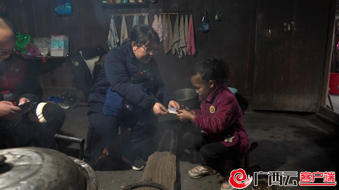 杨宁在给村里的老人、小孩买糖。