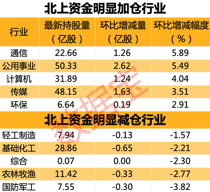 北上资金大幅增持通信板块