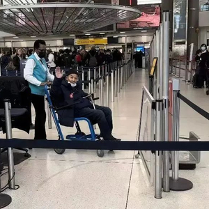 2022年11月底,美国纽约肯尼迪机场里,出现了一位坐着轮椅的特殊旅客。