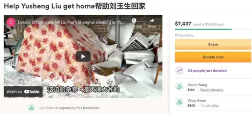 这个朴素又真挚的愿望,引爆了许多海外华人的泪点,经过大量媒体的报道,许多爱心人士和华人纷纷慷慨解囊,为大爷总计众筹了1.5万美元的回国经费。