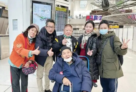 临近回国的那一刻,大爷笑着朝好友们招手,极其憧憬和向往回国后与家人团聚的幸福生活。