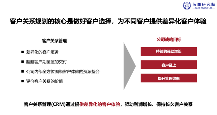客户关系规划的核心是做好客户选择,为不同客户提供差异化客户体验