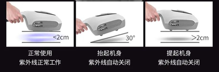 不会照到人,更不会对人体造成伤害,只要抬起机身,紫外线就会自动关闭。