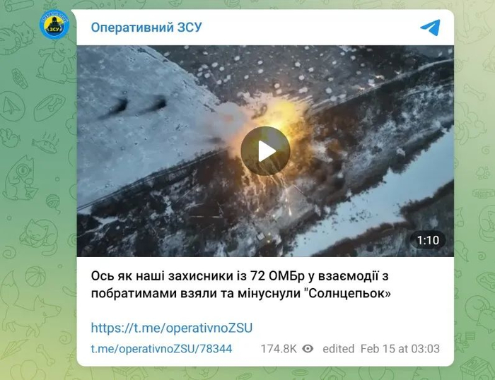 所谓“打击日本雇佣兵”的原视频中并未提到日本乌方信息显示,俄罗斯在顿涅茨克地区部署温压弹发射器,2月15日,乌克兰总统府负责人Andriy Yermak在电报频道中发布视频称,“第72旅炸了一个俄罗斯的‘Solntsepiok’。”根据CNN报道,“Solntsepiok”代指能够发射温压弹的TOS-1或TOS-1A发射器。但没有权威报道称日本雇佣兵被温压弹轰炸。