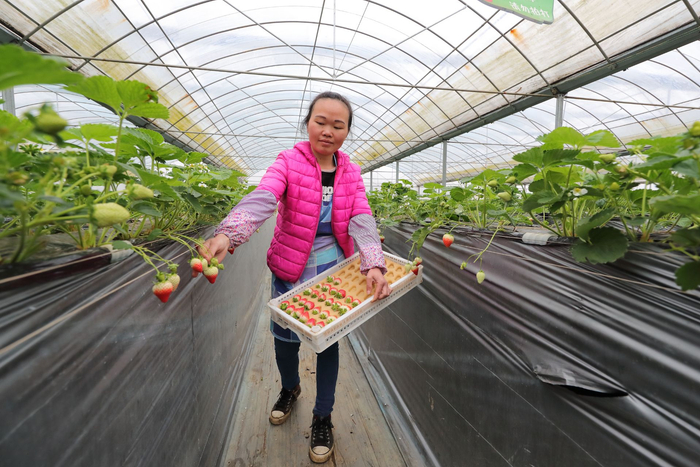 “能在这做还是高兴,过去挣点钱要去外地,家头没人照顾,现在村里有了这个草莓产业基地,我就赶紧回来了,在家门口能工作还能照顾到家庭。”林燕飞乐呵呵地说。