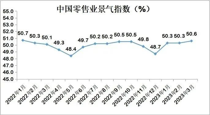 中国商业联合会:3月中国零售业景气指数较上月微升0.3个百分点