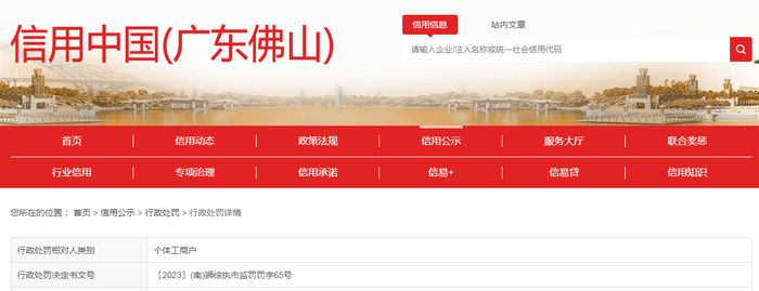 | 处罚机关 | 佛山市南海区狮山镇人民政府 | |||||