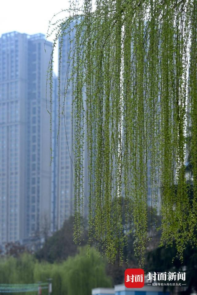 3月6日,伴随惊蛰节气的到来,万物吐新绿。成都锦江边,柳树吐新芽,细长的柳条长出了绿油油的新芽。一阵清风吹来,柳条随风翩翩起舞。