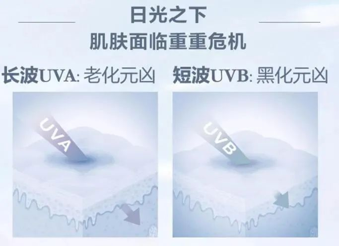 UVA属于长波,作用于皮肤深层,能弱化胶原蛋白,让皮肤失去弹性,容易出现凹痕和皱纹。