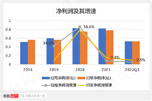 2018-2021年,公司归母净利润从5,170万提升至8,230万,CAGR为16.7%;但2022年前三季度下滑2.5%,出现增收不增利。
