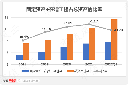 公司属于重资产经营模式,近年来,固定资产和在建工程合计占总资产的比重逐年上升,2021年末达51.1%,较2018年末提高了20个百分点。