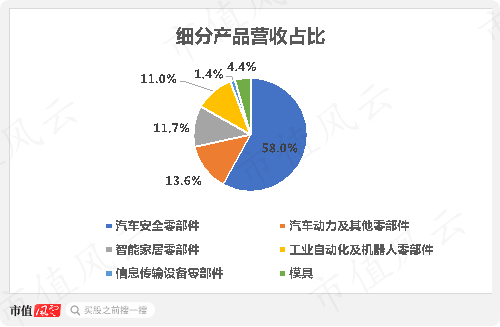 公司产品结构以汽车零部件为主,智能家居、工业化及机器人、信息传输设备等零部件为辅。