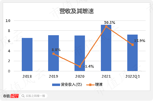 2018-2021年,公司营收从6.5亿增长至9.1亿,CAGR为11.8%;2022年前三季度为7.2亿,同比增长15.8%。