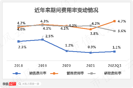 从三费费用率看,抱住大客户大腿的晋拓股份,2020年以后在销售上似乎没怎么发力,销售费用率2022年前三季度仅为1.1%。