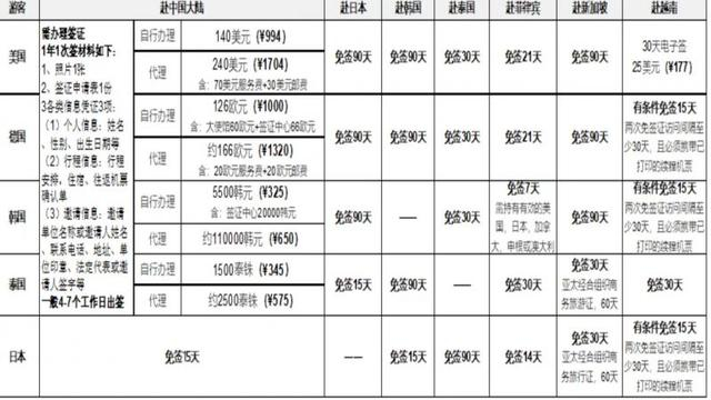 在王煜提交的《关于落实高水平对外开放,提振疫后经济复苏, 进一步优化旅游签证便利性,促进入境游发展的建议》中,中国及周边国家旅游签证政策对比