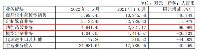 拆解药康生物的业务构成,可以明显看到功能药效评价业务同比2021年1-6月实现了接近100%的增长。