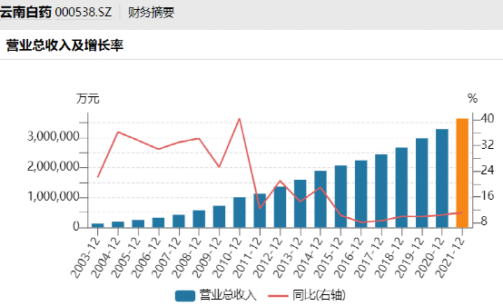 2006年,云南白药各项主要经济指标跃居中医药行业首位,公司总市值位居A股医药类上市公司之首,由行业的追随者成长为行业的领跑者。此后,云南白药业绩继续增长,一直保持到2020年。