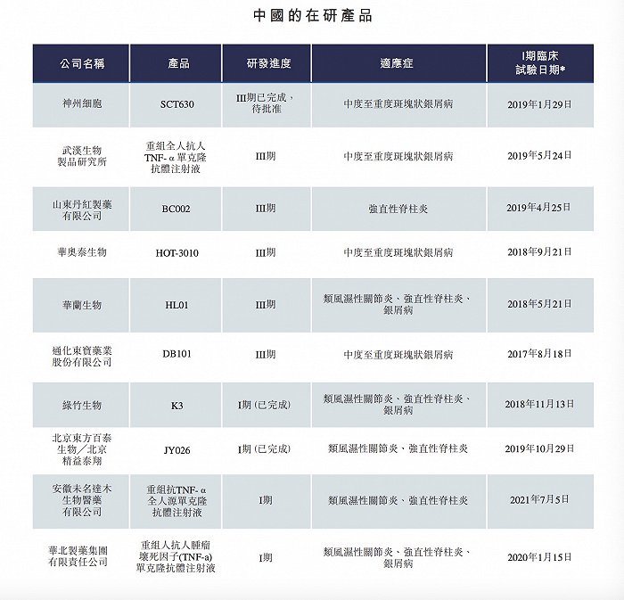 国内在研的阿达木单抗类抑制剂就更多了包括有神州细胞武汉生物制药研究所山东丹红制药华奥泰生物等他们也都比绿竹生物早均已处于临床III期