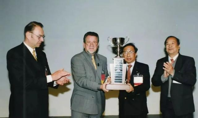 1998年陈清泉荣获世界电动汽车协会最高奖(右二为陈清泉)