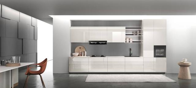 同时,整体门板采用高光UV工艺,不仅能够很好地还原低饱和度色彩,还具有细腻手感,带来使用愉悦感。高光UV工艺还具有硬度高、防湿抗菌的特性,在使用时更耐磨、更好打理,可以更好地承担剁、切、搅、煎、炒、炸等复杂的烹饪操作,不惧油污的污染,让厨房生活更舒畅无忧。