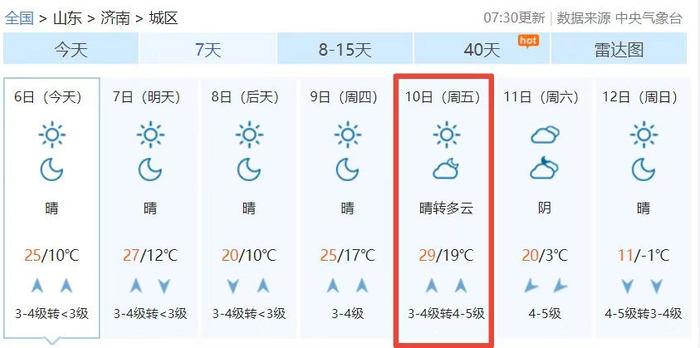 从目前预报来看,本周五之前,全省天气晴朗、光照充足,大部地区气温还将继续走高,周四至周五各地气温将升至近期最高点。其中,济南周五最高气温或达29℃,最低气温19℃,可能打破当地3月上旬气温最高纪录。