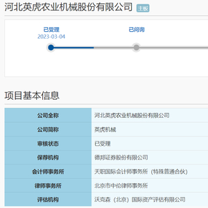 2023年3月7日,河北英虎农业机械股份有限公司(下称“英虎机械”)日前显示主板IPO获上交所受理,本次拟募资12.87亿元。
