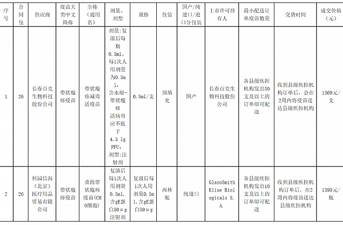 近期,福建省公开了2023年非免疫规划疫苗采购项目中选品种及价格等信息。列表显示,百克生物的首个国产带状疱疹疫苗报价1369元/支,而葛兰素史克的带状疱疹疫苗(商品名:欣安立适)报价1598元/瓶。
