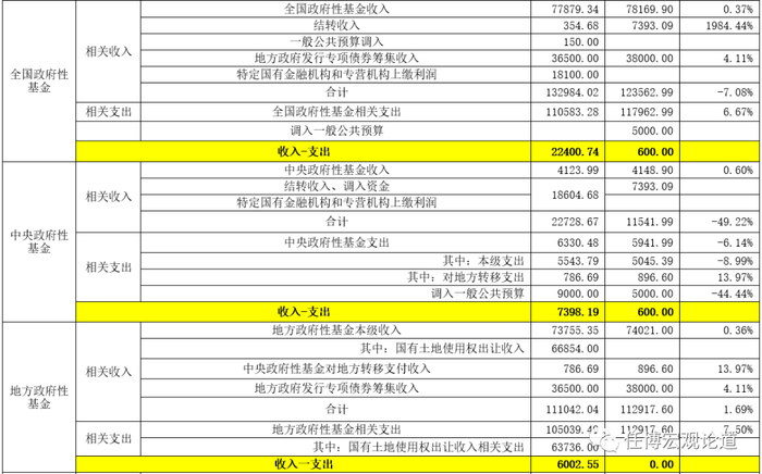 2、中央与地方政府性基金预算收入同比分别增长0.60%和0.36%