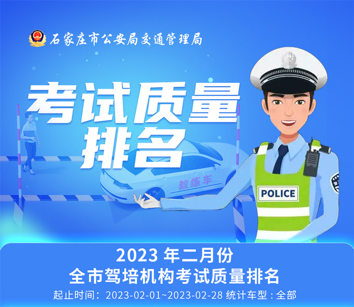 河北新闻网3月7日讯 (燕赵都市报纵览新闻记者 刘杰)记者从石家庄市公安局交通管理局官方微信公众平台“石家庄公安交警”获悉,2月份石家庄市各驾校考试质量及统计出炉。