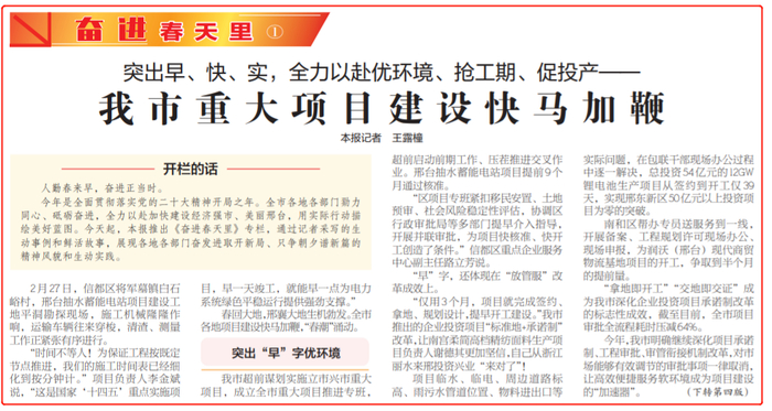 突出早、快、实,全力以赴优环境、抢工期、促投产——