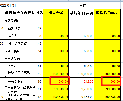 1月报表如图,期初的就是2021年12月系统的数据,期末就是2022年1月的数据。