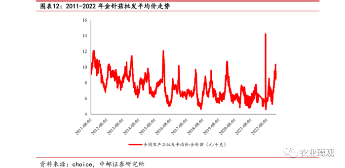 金针菇行业市场集中度提升,2022年下半年以来价格上涨明显