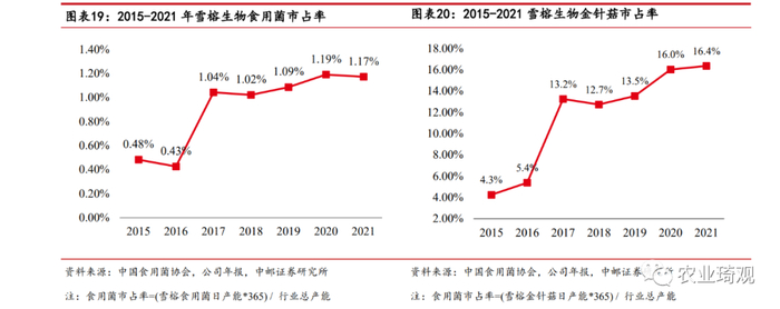 规模化生产优势显现,持续维持较高市占率。随着公司产能的提升,尤其是2015年上市以后,公司金针菇市占率上升尤为明显。2015年公司金针菇产品市占率仅4.25%,到2021年已提升至16.35%,目前是金针菇市占率最高的企业。